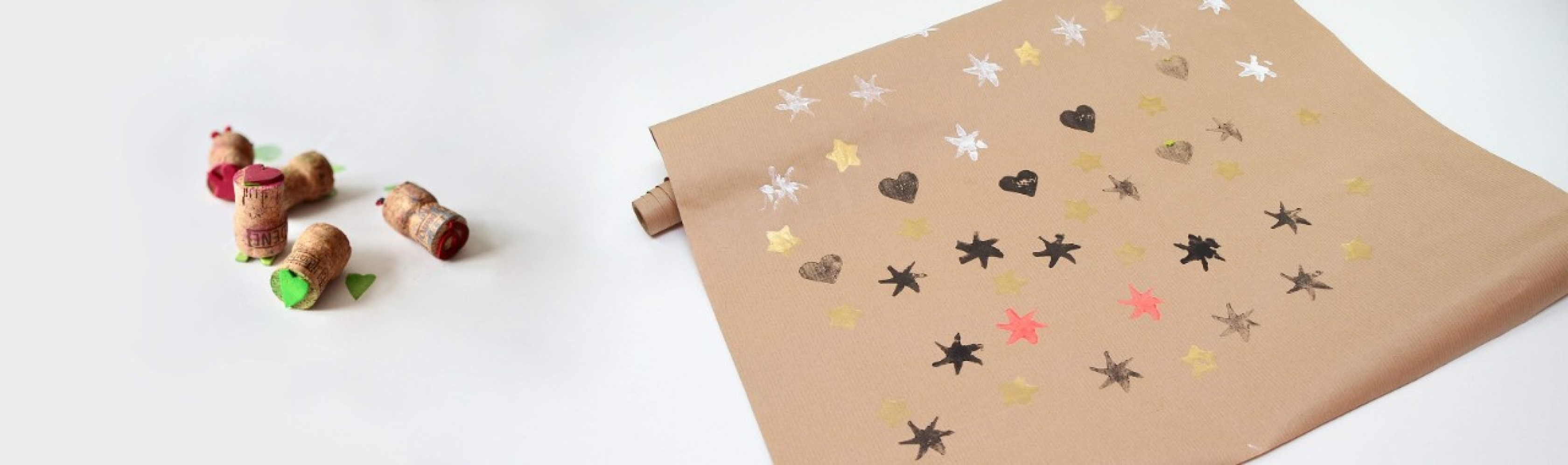 Conci-Creative - Selbstgestaltetes Geschenkpapier mit Stempeln aus Korken