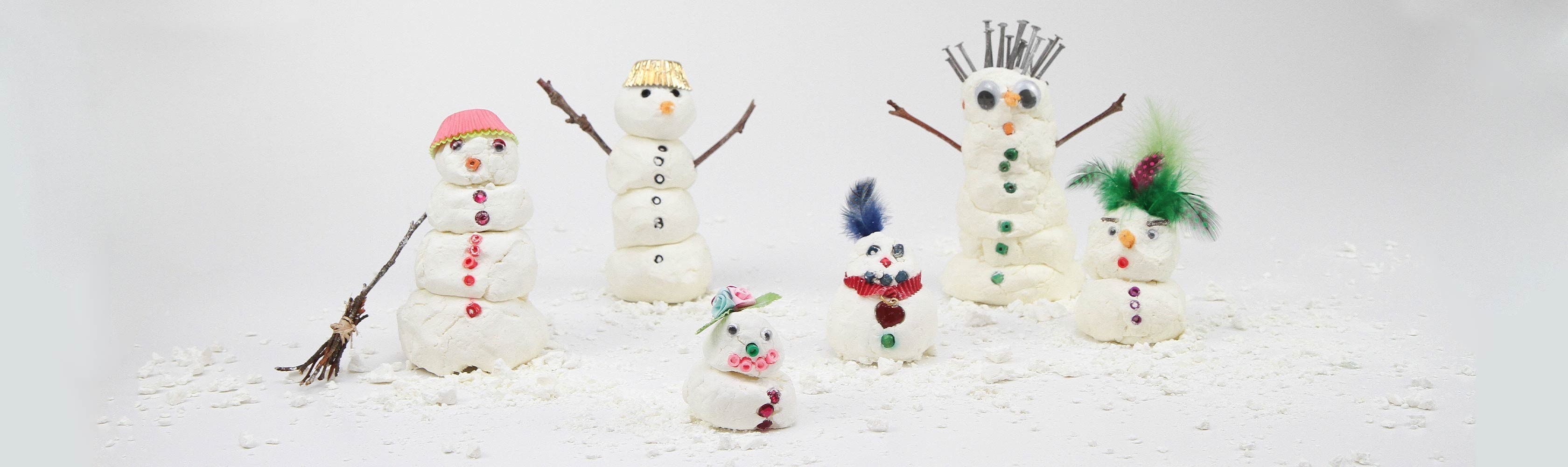 Schnee gehört einfach zum Winter und ein Schneemann/-frau dazu sowieso. Blöd nur, wenn keiner weit und breit in Sicht ist. Kein Problem, dann hol den Schnee einfach ins Haus! Denn aus drei Zutaten lässt sich Schnee ganz einfach selber herstellen. Und daraus lassen sich nicht nur ganz tolle Schneemänner und -frauen formen, sondern auch ganz viel anderes. Der Vorteil – garantiert warme Hände.