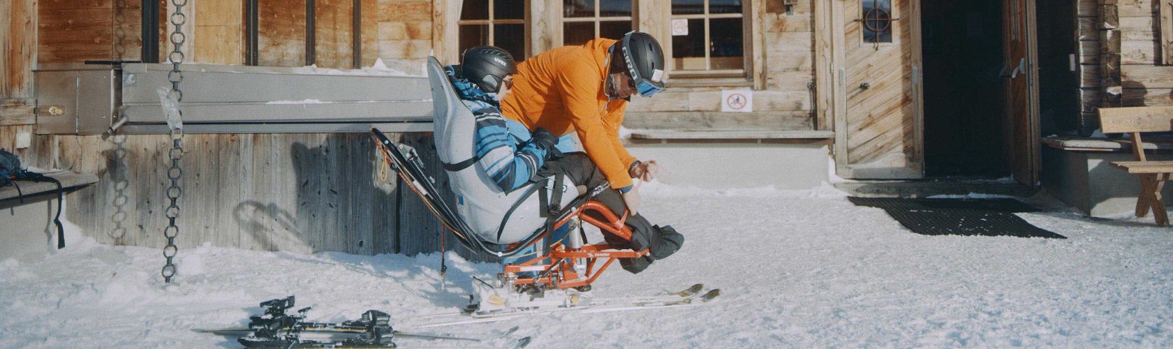 Bei richtiger Unterstützung ist Schneesport auch mit einer körperlichen und/oder geistigen Beeinträchtigung möglich. Gian Cadosch und Markus Gafner machen es vor: Die beiden Berner sind zu zweit auf der Piste unterwegs – der eine sitzend, der andere stehend. Ein ganz normaler Skitag.