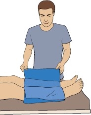 Wichtiger Baustein beim PECH-Schema nach Sportverletzungen. Kühlpackung immer mit Handtuch umwickeln, bevor es auf die Haut gelegt wird – ansonsten besteht die Gefahr von Erfrierungen. Ca. 10 Minuten kühlen, dann Pause. Genauso gut gehen auch – wenn keine Kühlpackungen verfügbar sind – andere Dinge aus dem Gefrierfach, z. B. tiefgefrorene Erbsen.