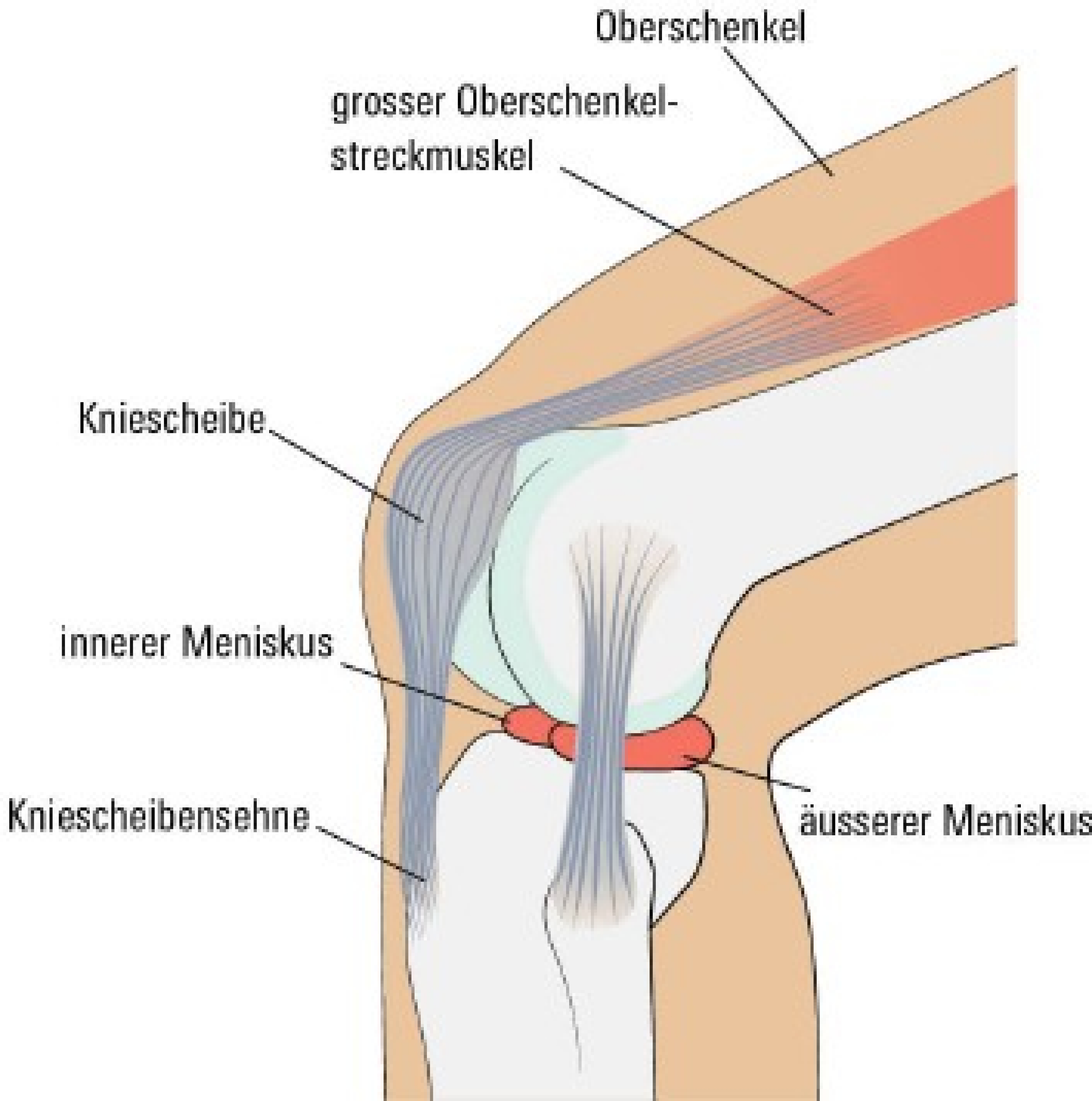 Auch wenn man meistens von «dem Meniskus» spricht: Es gibt in jedem Knie zwei davon, den Innen- und den Aussenmeniskus. Der Meniskus ist eine halbmondförmige elastische Knorpelscheibe, die sich zwischen den Gelenkflächen des Ober- und Unterschenkelknochens befindet. Wenn wir unser Kniegelenk bewegen, verschieben sich auch die beiden Menisken zwischen den Gelenkflächen. Sie sorgen so für eine Stabilisierung des Kniegelenks und dienen gleichzeitig als Puffer für eine optimale Druckverteilung zwischen den Gelenkflächen.