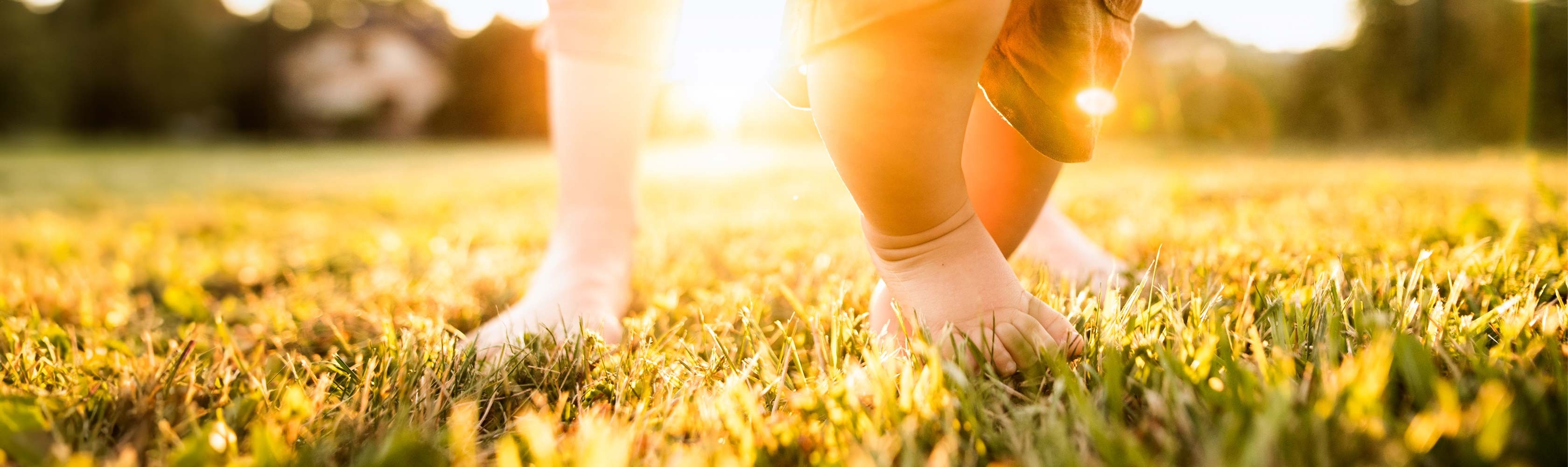 Blog de Conci août-24 - Une paire de pieds d'enfants et une paire de pieds d'adultes se trouvent dans un pré.