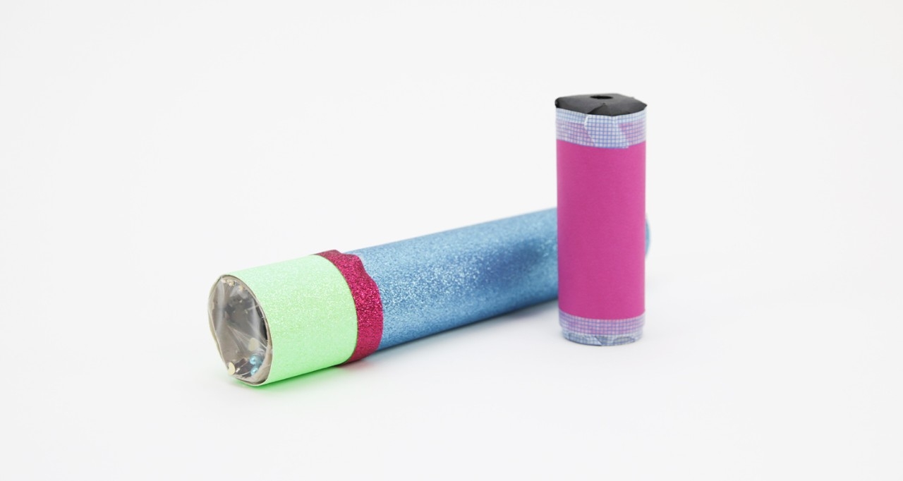 - Décorer le kaléidoscope avec du papier de couleur et/ou du washi tape.