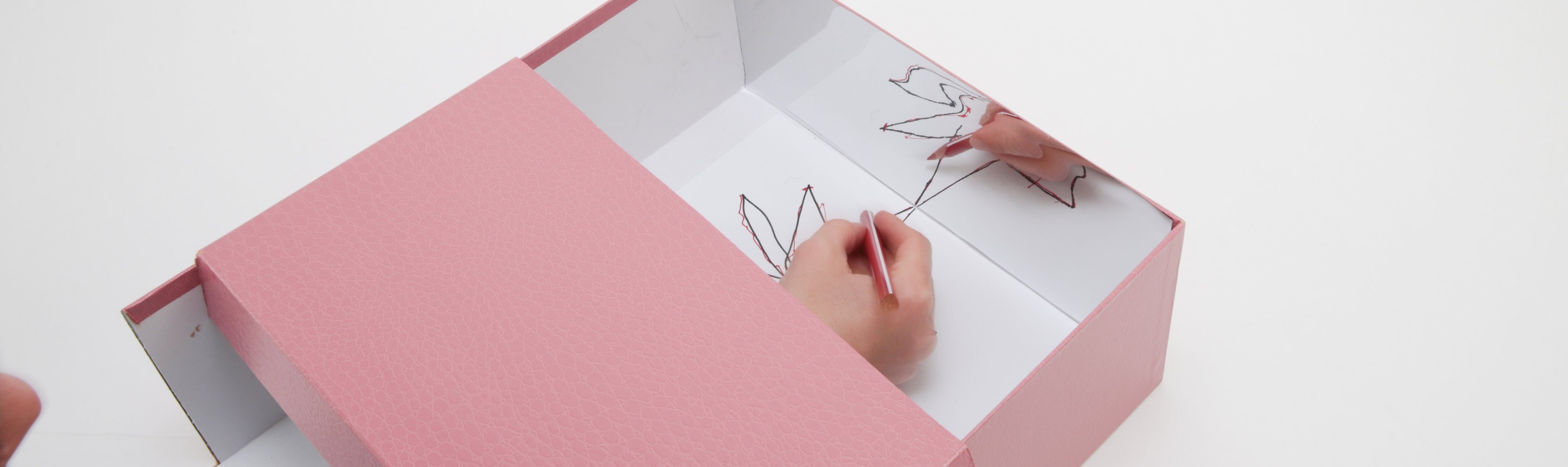 - Placer une moitié du couvercle sur la boîte de manière à ce que la feuille soit cachée, mais que seul le reflet du dessin soit visible dans le miroir.