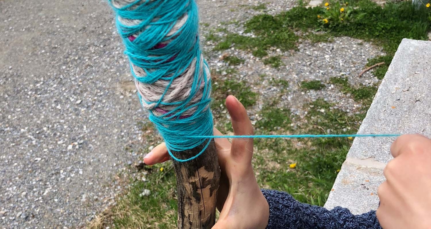 - Enrouler du fil de laine ou de coton autour du bâton et nouer les extrémités. Alterner les couleurs pour créer une jolie décoration. Et voilà, ton bâton de rando «perso» est prêt!