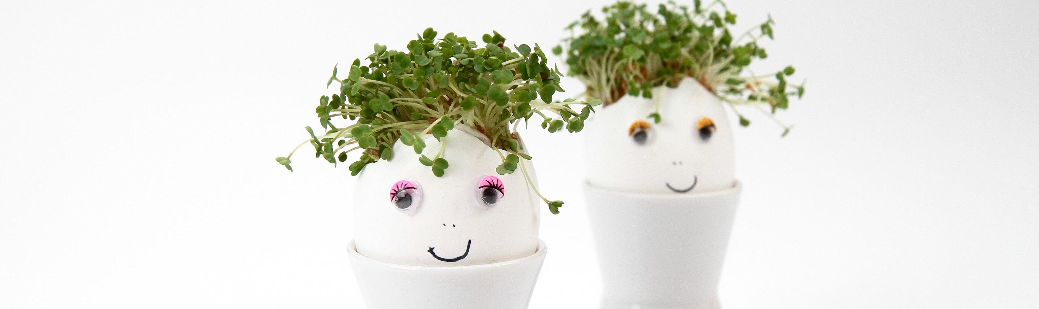 Avec l’arrivée du printemps, on peut de nouveau varier les plaisirs de la salade en y ajoutant des herbes fraîches. Et à l’approche des fêtes de Pâques, on commence à réfléchir à la déco : une jolie tête d’œuf couronnée d'une belle touffe de cresson, n’est-ce pas une bonne alternative, drôle et originale, au traditionnel œuf de Pâques ?