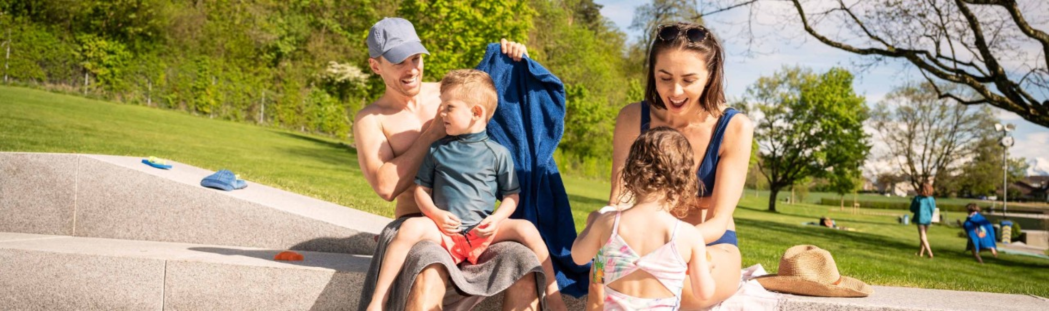 Blog de Conci juillet-24 - Une mère tient son fils dans ses bras, derrière elle, le père a sa fille sur les épaules, tous sont sur la plage