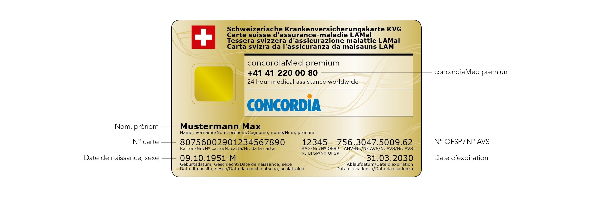 Les clients bénéficiant de l’Assurance-hospitalisation PRIVÉE reçoivent la carte Gold de CONCORDIA et bénéficient des avantages de concordiaMed premium. Ce paquet de prestations exclusif permet d’accéder directement et sans restriction à un encadrement médical de premier ordre partout dans le monde.