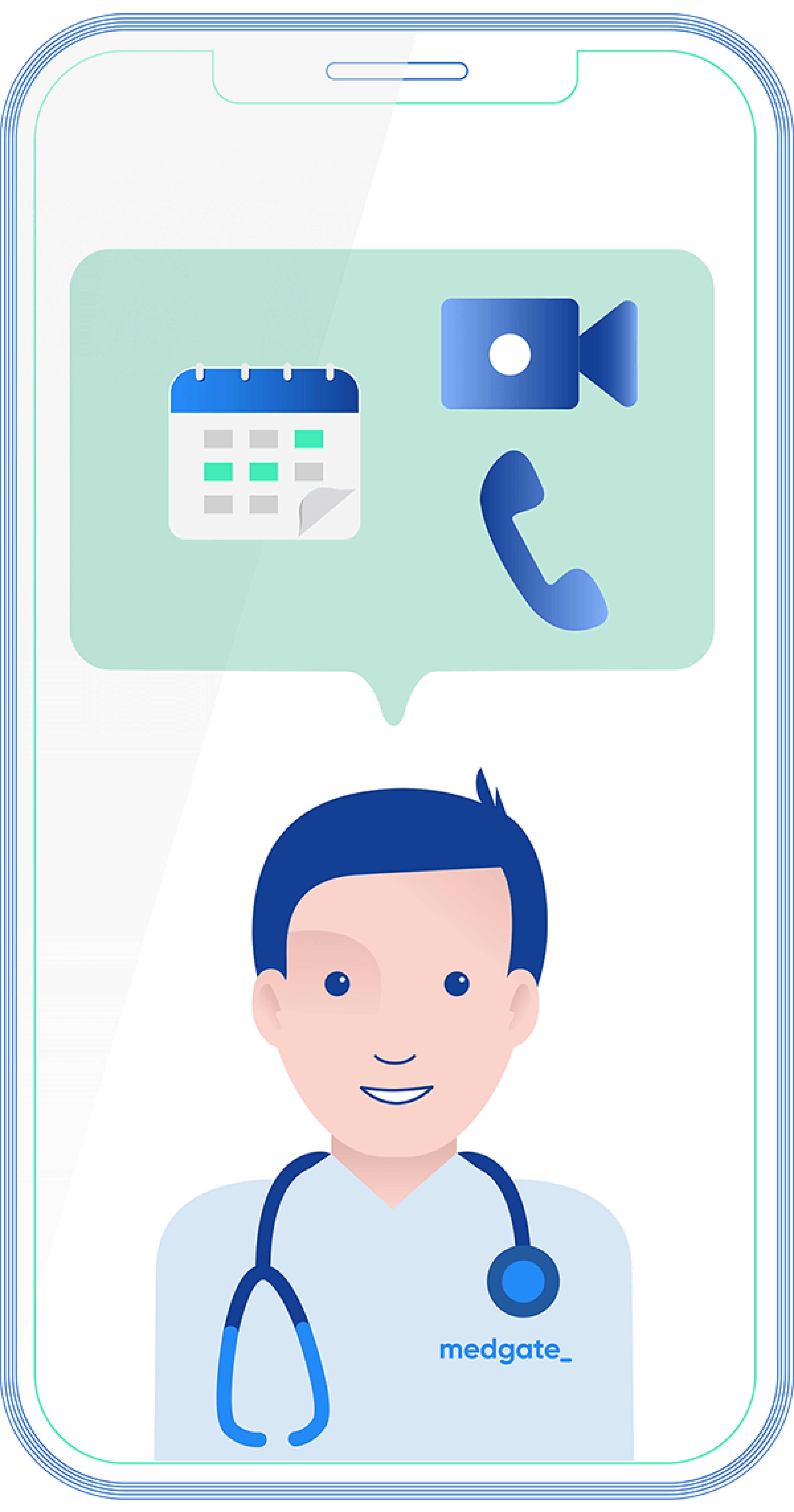 - Vous décidez de la manière de contacter Medgate: par téléphone, appel vidéo ou sur le chat.