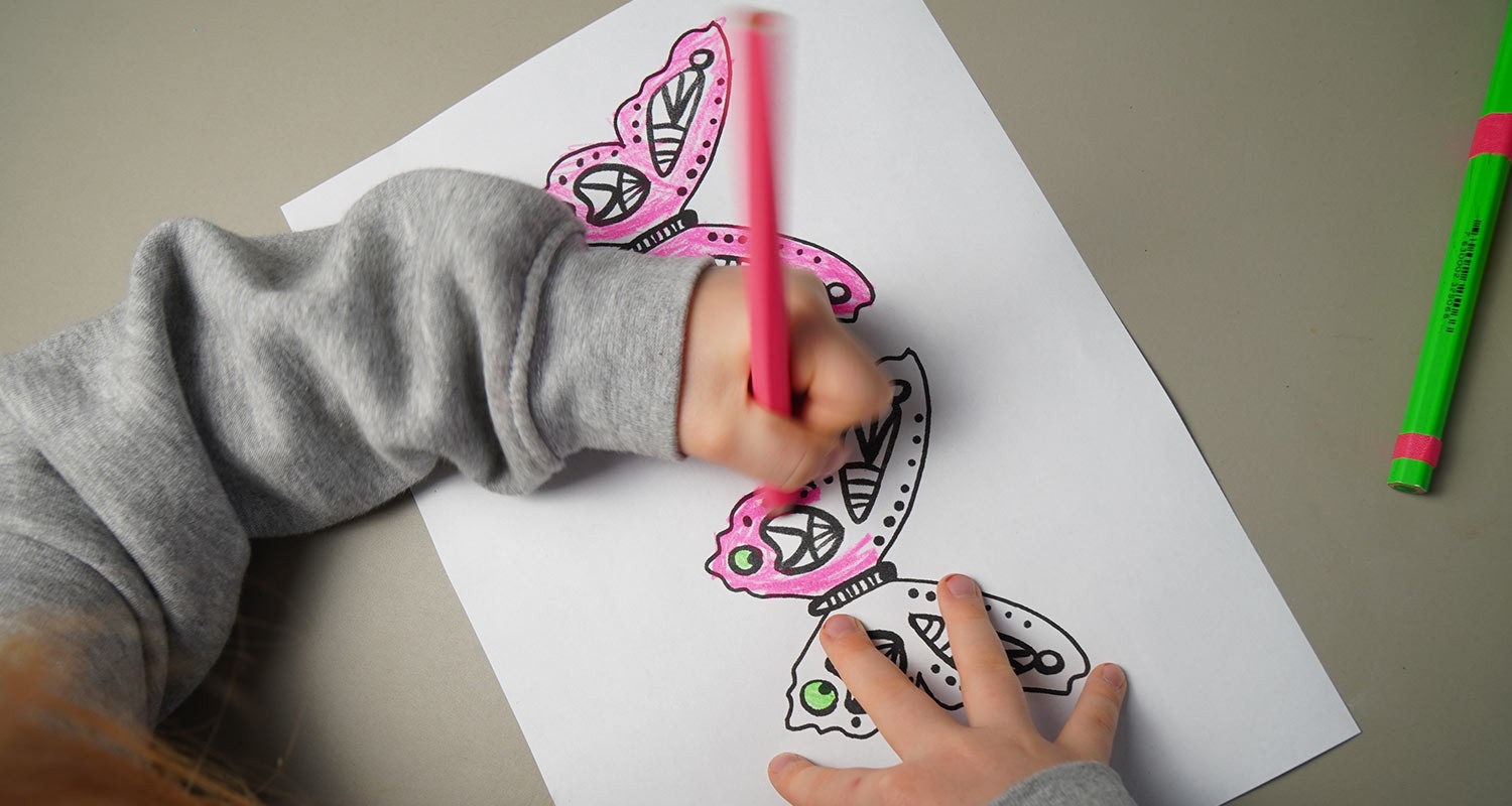 Volteggia elegante nell'aria, si appoggia su un fiore per un breve istante e vola via di nuovo: è la farfalla. Con il modello da colorare di Conci potrai tenere in equilibrio su un dito questo splendido abitante dell'estate e incantare gli spettatori con i suoi colori vibranti.