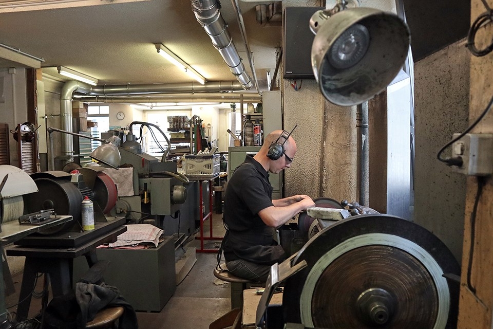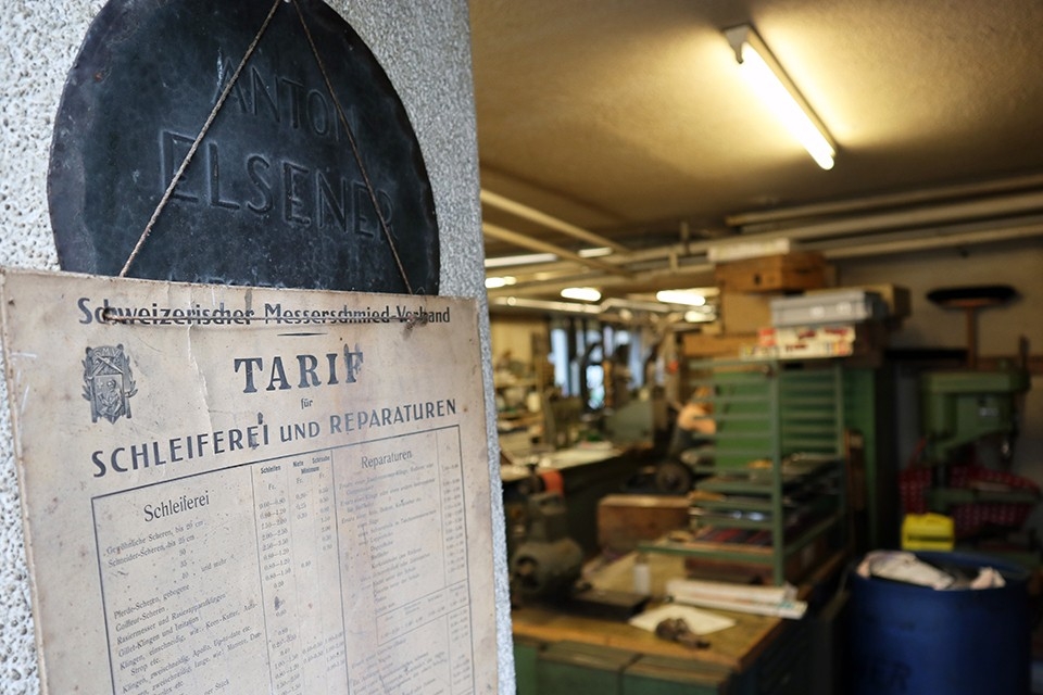 Dopo una passeggiata con i bambini, Ruedi Elsener fa rientro nell’officina, dove si infila il grembiule da lavoro con il logo di famiglia. Si ricorda ancora bene di quando i suoi genitori erano a capo dell’impresa. «A quei tempo era tutto diverso. Quando io e mio fratello Felix abbiamo rilevato l’azienda, abbiamo impresso un nuovo corso. Ora è il turno dei nostri figli, che fanno di testa loro e introducono delle novità, ma i risultati parlano chiaro: l’attività è solida e si espande. Non dobbiamo sempre dire la nostra. I ragazzi sanno il fatto loro e andiamo d’accordo». E ora che è in pensione di sicuro non si annoia: «Aiuto volentieri e quando c’è bisogno e torno ad affilare coltelli. Oppure mi godo il tempo con i nipotini.»