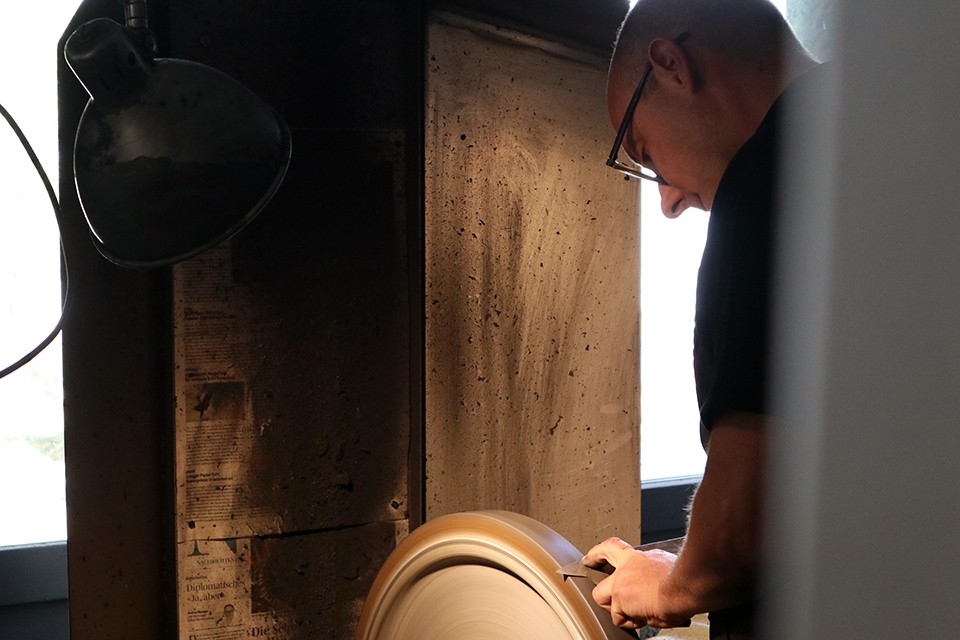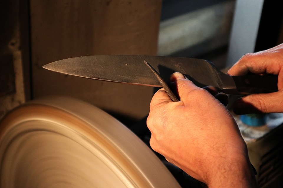 Philipp Elsener, 37 anni, il più giovane dei figli di Ruedi e Marianne, oggi porta avanti l’attività insieme alla sorella Cécile, 43 anni, e al fratello Viktor, 42 anni. «Mio padre mi ha insegnato tutto lo scibile sull’affilatura dei coltelli. Nel nostro mestiere è importante sviluppare un sesto senso, che ci guida attraverso i 12 diversi passi necessari per la riaffilatura di un coltello. I consigli e i trucchi tramandati in famiglia mi tornano utili ogni giorno», ci racconta. «Anche se alle volte il lavoro a stretto contatto con mio padre metteva la mia pazienza a dura prova, il tirocinio è stato anche una scuola di vita», prosegue, mentre accanto a lui silenziosamente gira la mola ad acqua: «La particolarità di lavorare in famiglia è che ci capiamo tutti senza bisogno di istruzioni precise. Siamo cresciuti per così dire a pane e coltelli, avendo sempre davanti agli occhi i nostri genitori e i nostri zii come modello. Non ci è mai stato imposto di comportarci in un modo piuttosto che in un altro.» Lo conferma anche Viktor: «È come se avessimo interiorizzato cosa è giusto e cosa è sbagliato, perché è sempre stato così. Nessuno ci ha mai spiegato come comportaci con i nostri clienti. Lo sapevamo già, istintivamente!».